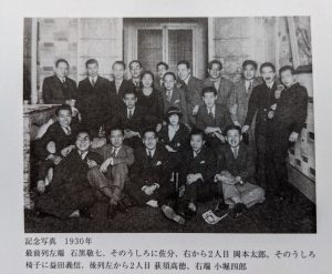 記念写真1930パリ(後列右端小堀四郎、左から2人目荻須高徳、中列左端佐分真、前列右から2人目岡本太郎)