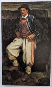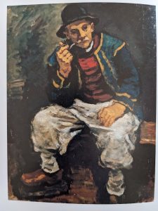 [【ブルターニュの男】モデルはモンシニ爺さんの弟で服装はフランス西北地方ブルターニュのものだ。第1回滞仏中の作。矢張りオルヌ街のアトリエで出来たものである…此処には大きなアトリエが前庭の中央の小池を囲んで七八つあり…最初の渡仏後期は正面のアトリエで…第二回目の時は右側の奥のアトリエで仕事をされた…]二人の往来が分かる。
