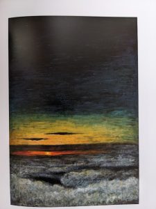 (冒頭画像は小堀四郎(90歳)1992年展図録より)小堀四郎の戦後作品が「精神性に富んだ神秘的な、宗教的とさえ言える(中略)自然観照が観念性、幻想性を帯びてモチーフに天空や海原が目立つ。彼岸の世界を観るかのようだ」と前篇で述べた。これらの作品を観てまず思い浮かべる言葉が美学上の概念「崇高」である。「崇高」とは雄大な自然描写に高尚さが宿っている美術作品を観た時に得られる感覚、といった意味合いで使われる。敬虔な気持ちにさせられる、とも言えよう。「(狭義の)美」とは異なる「美的範疇」の一つだ(美学ではその他の美的範疇として「滑稽」「悲壮」等がある)。その「崇高」絵画の代表事例が19世紀前半のドイツロマン派の画家、カスパー・ダーヴィト・フリードリヒである。