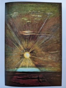 ドイツロマン派絵画は、古典を規範として形態把握を一義とするラテン的なアカデミズムをベースとしながらも、風景の写生に軸足を移しゲルマン的な内省に因って哲学的思索を表現した。フリードリヒの風景画は自然の中に超越的存在を暗示し精神の高揚を喚起している。西欧南方のラテン系とは違う西欧北方系の特長といえる。フリードリヒを日本に初めて紹介したのは東山魁夷(1908~1999)である。ドイツ留学中(1933~1935)に知ったようだ。